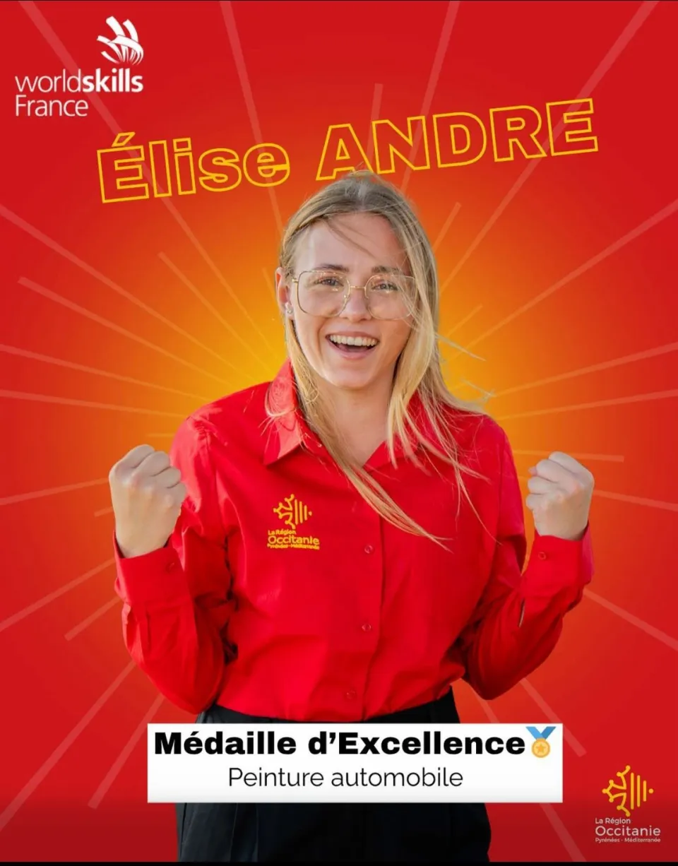 Élise a brillamment représenté la région d'Occitanie dans la catégorie « Peinture Automobile », l’un des cinq métiers de la filière Mobilité. Après plusieurs mois d’entraînement intensif, aux côtés de ses tuteurs en entreprise et de ses enseignants du Lycée Louis Rascol et de la CMA de l’Aveyron, elle a su démontrer tout son savoir-faire, sa rigueur et sa passion pour son métier.